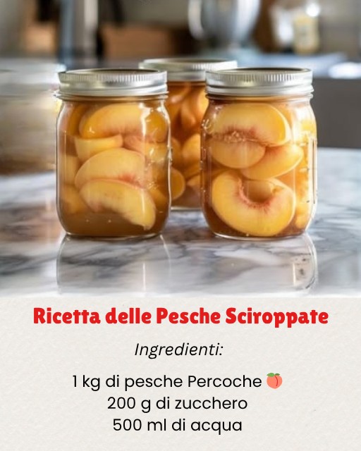 Ricetta delle Pesche Sciroppate Ingredienti:1 kg di pesche Percoche200 g di zucchero500 ml di acqua