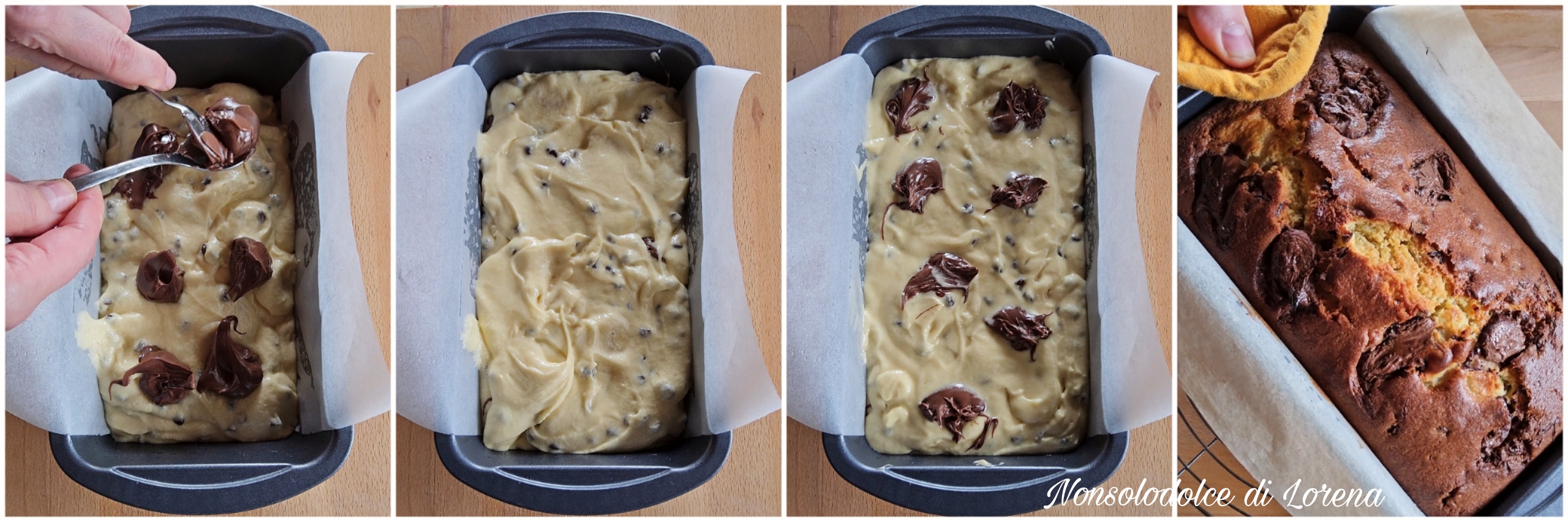Versate circa metà composto in uno stampo da plumcake possibilmente rivestito con carta forno, oppure imburrato e infarinato.