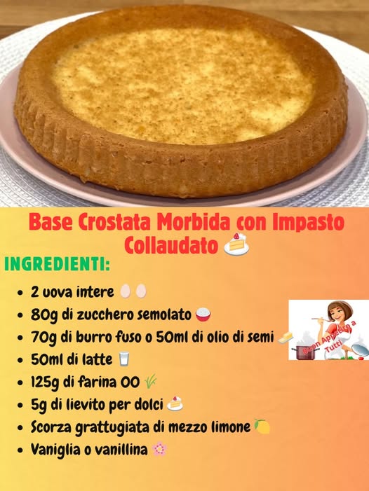 Per preparare la base crostata morbida con impasto collaudato, avrai bisogno dei seguenti ingredienti: