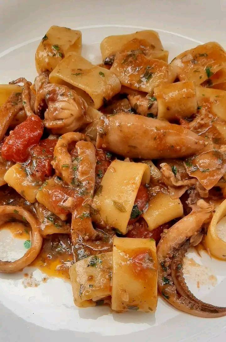 CalamarataRicetta di Franco BenincasaIngredienti: Calamaro(pulito, eliminare le iteriora, la pelle e tagliato ad anelli) 2 spicchi daglio(schiacciato) pomodorini(tagliati a metà)prezzemolo (tagliato finemente) olio, sale.Procedimento: in una padella un filo d’olio evo, aglio e i tentacoli(essendo la parte più dura devono cuocere qualche minuto in più)prezzemolo, a seguire i pomodorini, ancora il calamaro fatto ad anelli, … Read more
