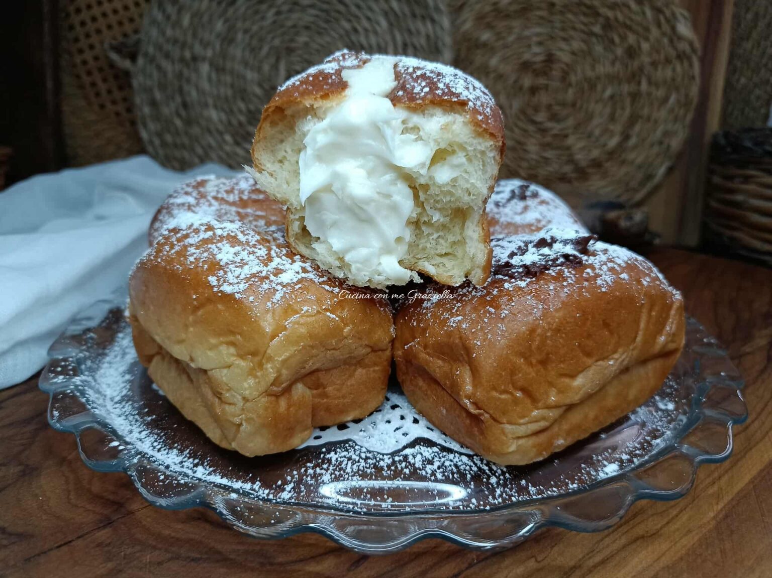 Ingredienti (per circa 19 brioche pandoro da 55 g ) 500 g di farina Manitoba o farina o forte ( W330) 100 g di zucchero 15 g di miele (meglio se d’acacia o millefiori) 5 g di sale 225 g di latte intero fresco 5 tuorli ( circa 70 g ) 100 g … Read more