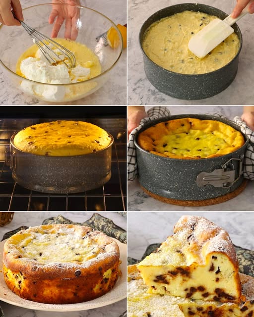 Ingredienti:Ricotta vaccina 600 gUova 4Zucchero 145 gGocce di cioccolato 130 gLimone (scorza) 1Zucchero a velo q.b.Preparazione: