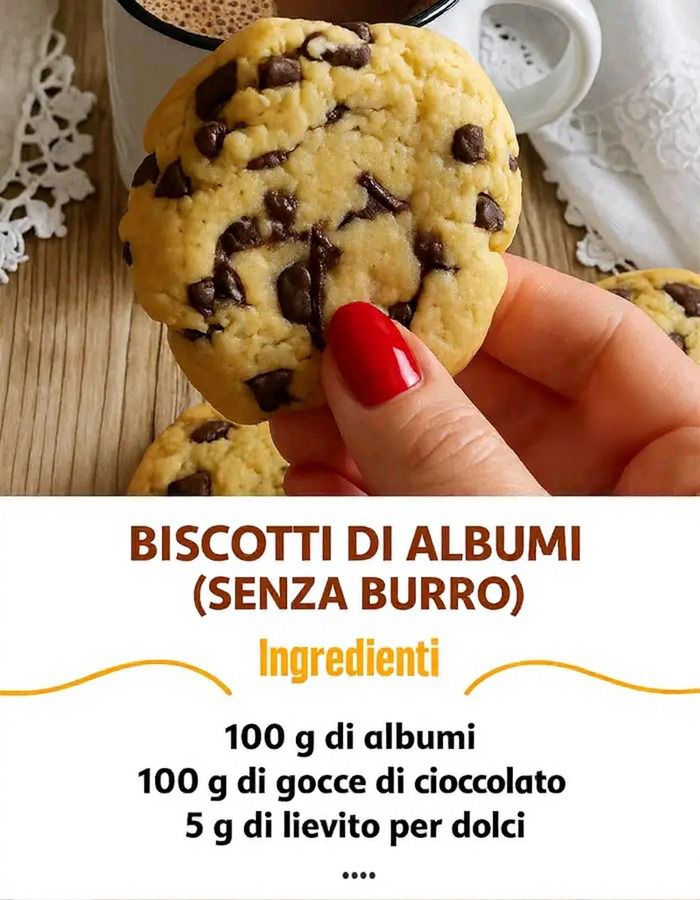 I biscotti solo albumi e gocce di cioccolato (e senza burro) croccanti, leggeri e si conservano a lungo!