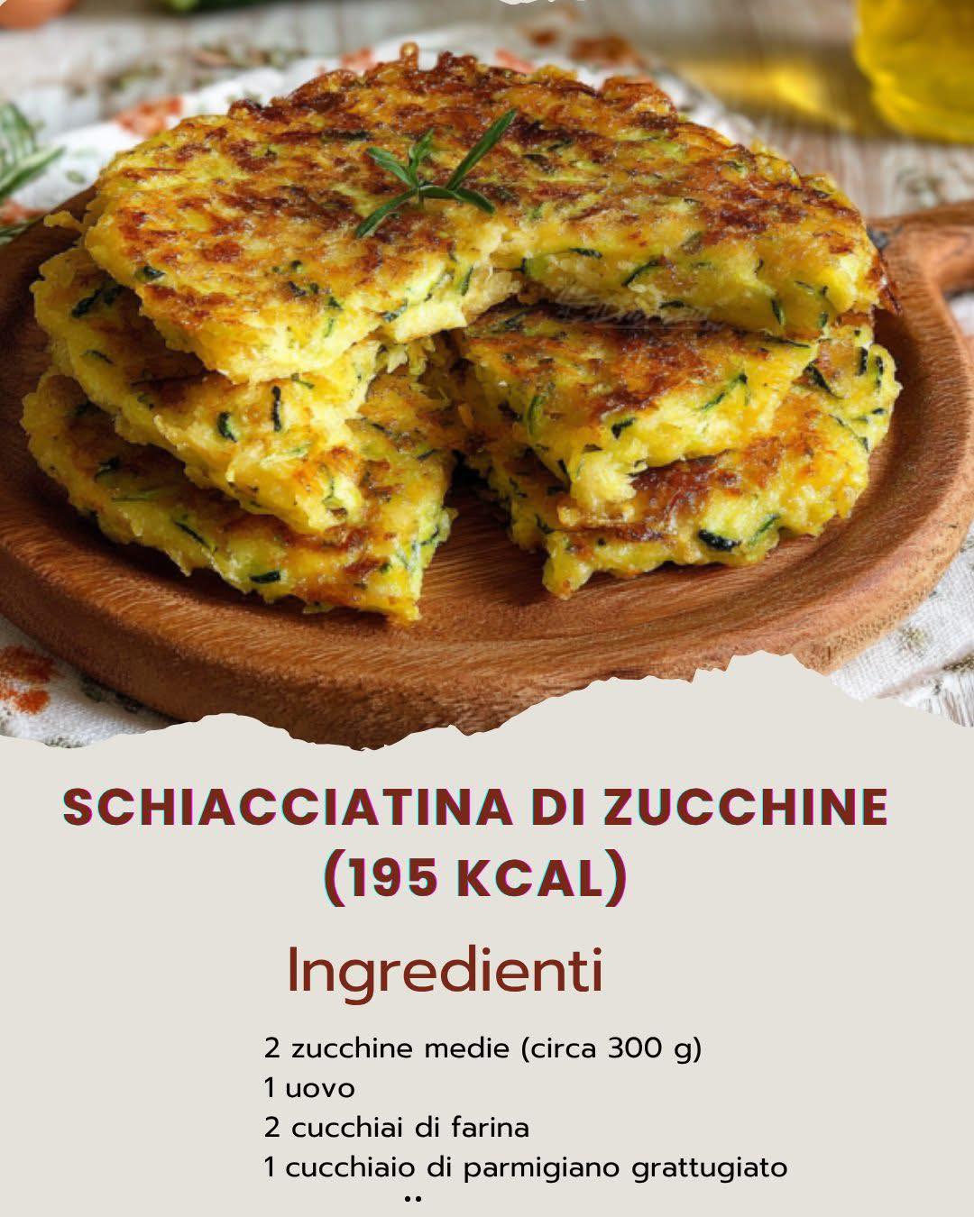 Schiacciatina di Zucchine – Leggera e Saporita (195 Kcal a porzione) Ingredienti (per 2 porzioni)2 zucchine medie (circa 300 g)1 uovo2 cucchiai di farina (anche integrale o di riso)1 cucchiaio di parmigiano grattugiatoSale e pepe q.b.Prezzemolo tritato q.b.1 cucchiaino di olio extravergine d’oliva Preparazione
