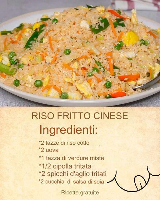 Ingredienti: 2 tazze di riso cotto (preferibilmente freddo) 2 uova 1 tazza di verdure miste (carote, piselli, mais) 1/2 cipolla tritata 2 spicchi d’aglio, tritati 2 cucchiai di salsa di soia 2 cucchiai di olio (vegetale o di sesamo) Sale e pepe a piacere Erba cipollina tritata (facoltativa, per decorare) Preparazione: