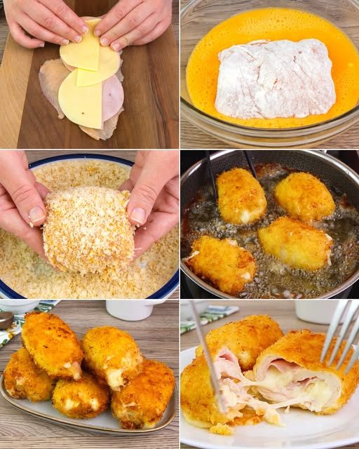 Involtini di pollo: un piatto semplice e veloce ma ricco di gusto! Pollo ripieno di prosciutto e formaggio. Speriamo che ti piaccia tanto quanto noi. ingredienti 5 petti di pollo 200 g di prosciutto cotto 200 gr provola Farina 2 uova pangrattato panko Olio per friggere Preparazione