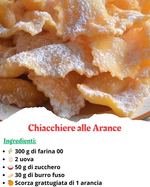 Per preparare delle deliziose chiacchiere alle arance, avrai bisogno dei seguenti ingredienti: