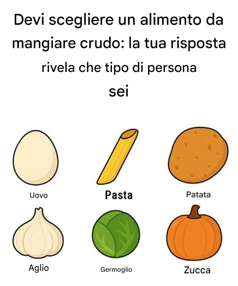 A volte, le domande più semplici rivelano le verità più sorprendenti. Immagina di dover scegliere uno di questi alimenti da mangiare crudo: uovo, pasta, patata, aglio, germoglio o zucca.