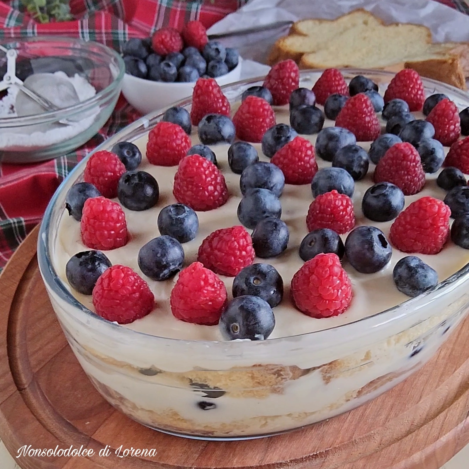 Dolce al cucchiaio con pandoro e frutti di bosco