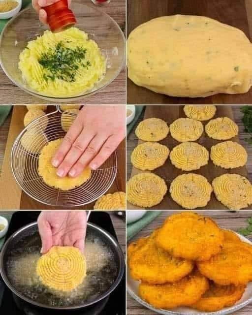 Le frittelle di purè di patate sono un modo delizioso per trasformare il purè di patate avanzato in una nuova delizia salata. Le purè di patate vengono mescolate con farina, lievito e spezie, quindi fritte in palline per una consistenza croccante all’esterno e morbida all’interno. Queste ciambelle possono essere servite come accompagnamento a una varietà di piatti o come spuntino gourmet in qualsiasi momento della giornata.