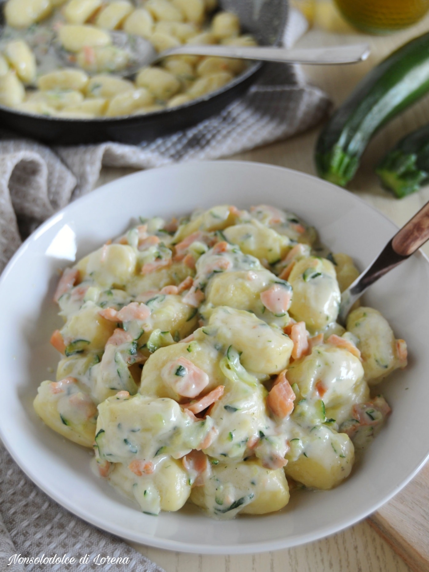 Togliete dal fuoco gli Gnocchi cremosi al salmone e zucchine e serviteli immediatamente.