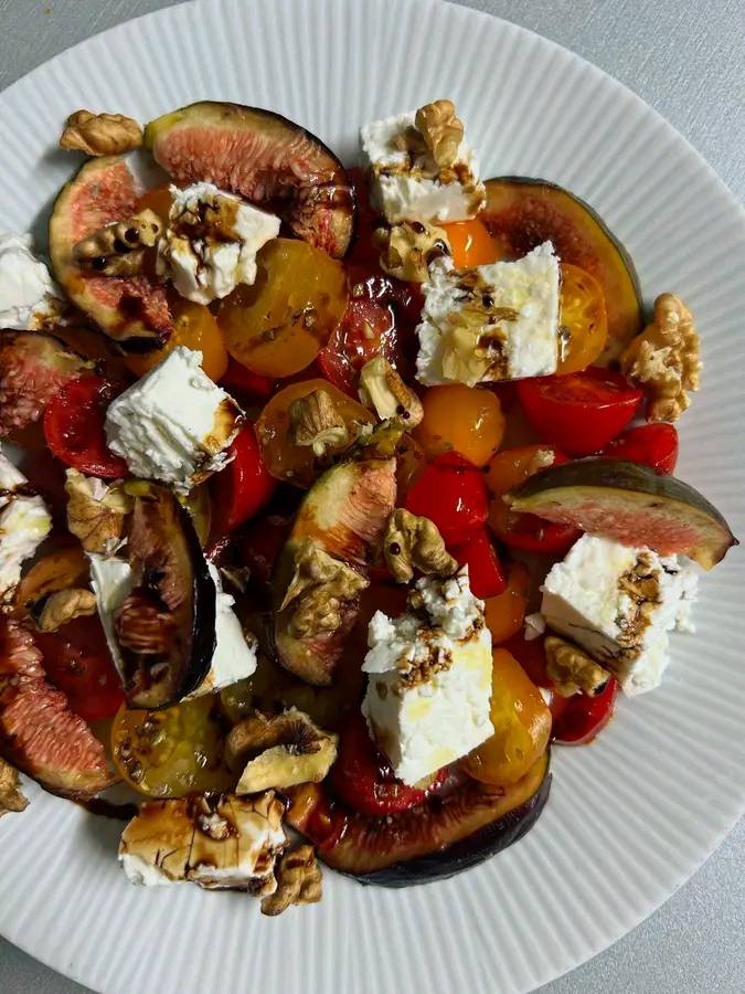 ✨Insalata di datterini misti, fichi, feta, noci e aceto balsamico denso✨
