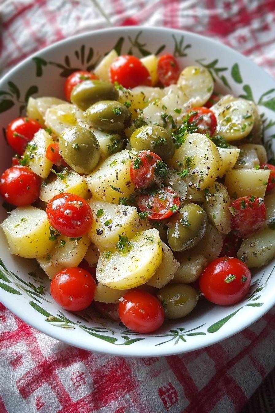 Se stai cercando un contorno fresco e saporito, questa insalata di patate con pomodorini e olive è perfetta per ogni occasione! ![]()