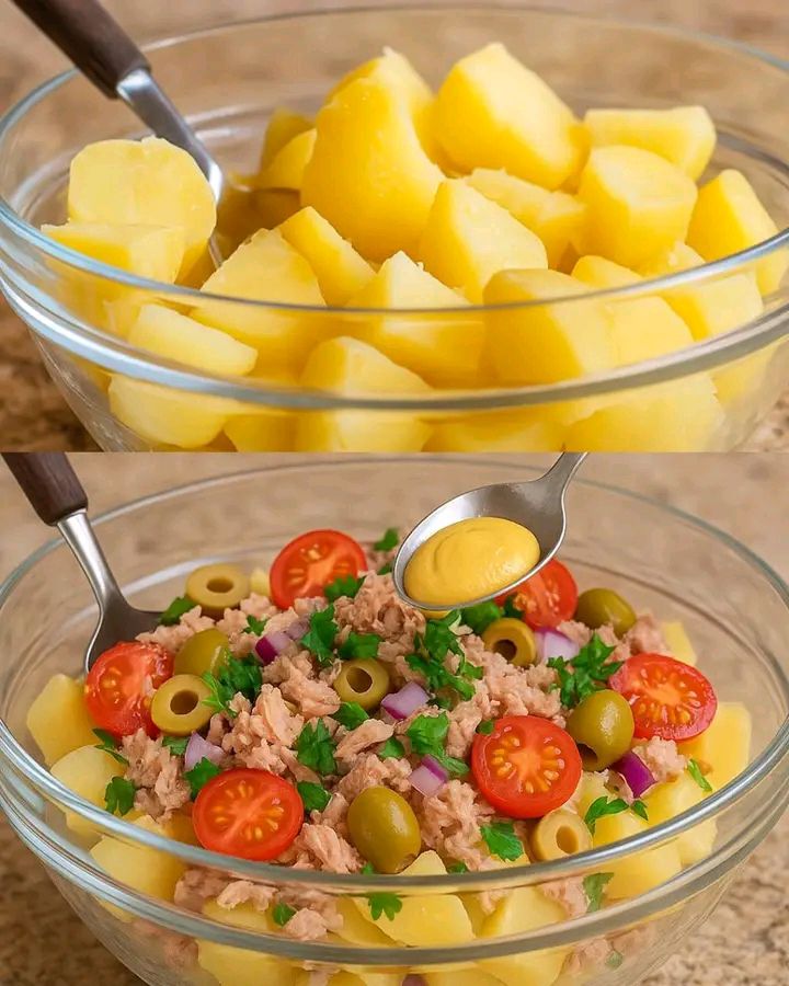 insalata di patate e tonno veloce con ingrediente segreto (la senape