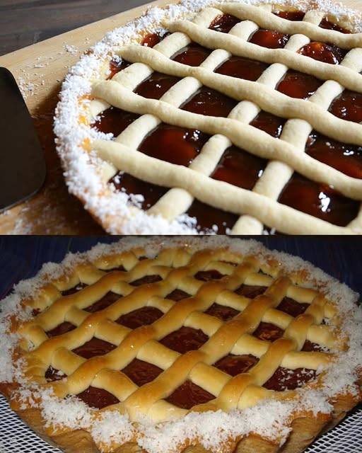 Questi graziosi tortini sono generalmente fatti di pasta frolla, confettura di frutti rossi e ricoperti da un grazioso reticolo di pasta frolla. Potete poi spolverare o meno con lo zucchero a velo.