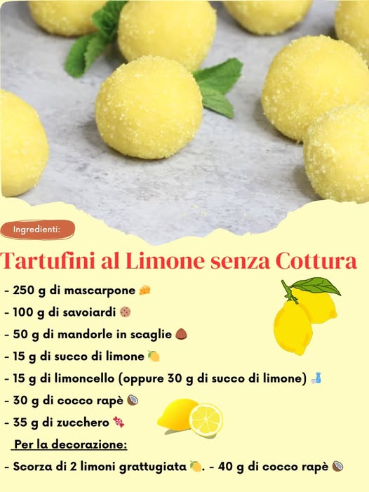 Ingredienti Base: 250 g di mascarpone ???? 100 g di savoiardi ???? 50 g di mandorle in scaglie ???? 15 g di succo di limone ???? 15 g di limoncello ???? (opzionale: sostituisci con 30 g di succo di limone) 30 g di cocco rapè ???? 35 g di zucchero ???? Per la decorazione: Scorza grattugiata di 2 limoni ???? 40 g di cocco rapè ???? Istruzioni