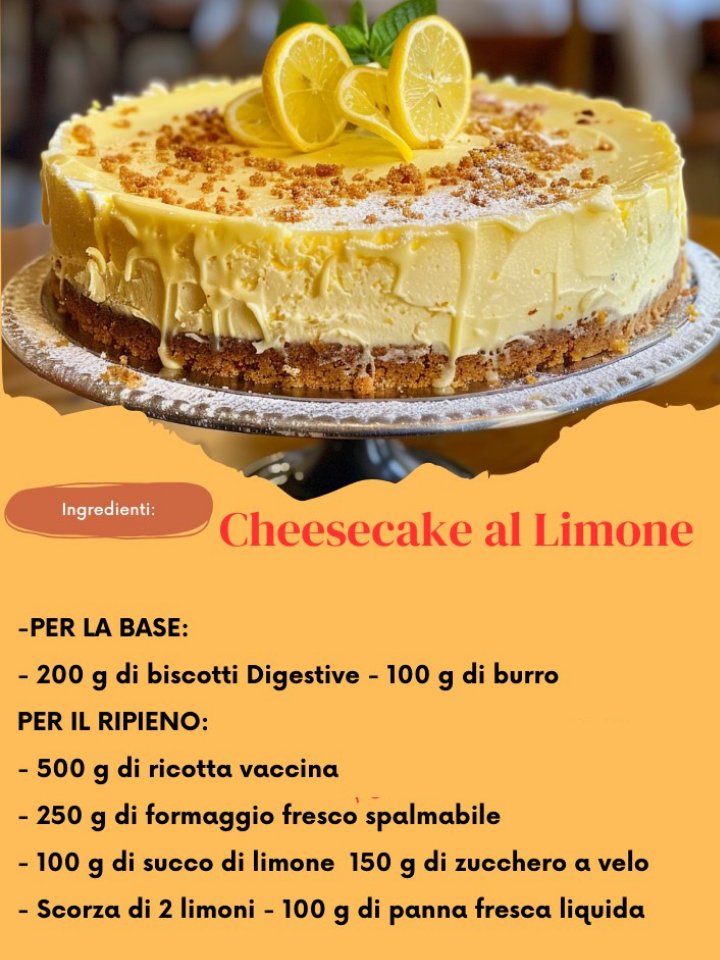 INGREDIENTI (PER UNA BASE DA 20 CM):**PER LA BASE:**– 200 g di biscotti Digestive– 100 g di burro**PER IL RIPIENO:**– 500 g di ricotta vaccina– 250 g di formaggio fresco spalmabile– 100 g di succo di limone– 150 g di zucchero a velo– Scorza di 2 limoni– 100 g di panna fresca liquida– 10 g … Read more
