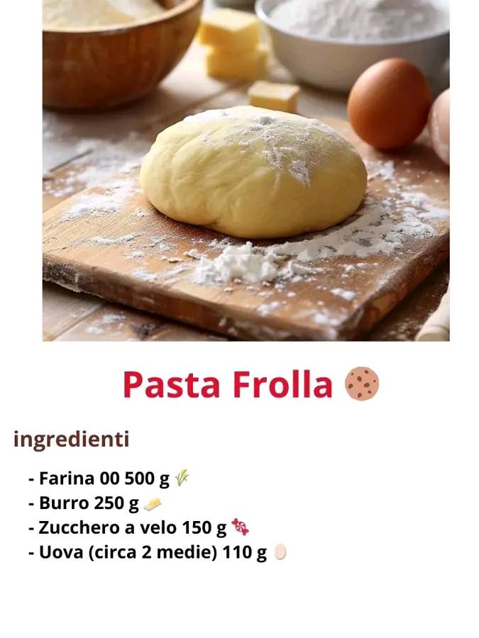 INGREDIENTI#### PER CIRCA 1 KG DI FROLLA– Farina 00 500 g – Burro 250 g – Zucchero a velo 150 g – Uova (circa 2 medie) 110 g ### COME PREPARARE LA PASTA FROLLA CON IL METODO CLASSICO