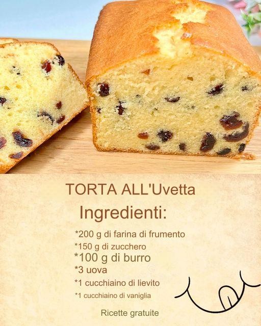 Ingredienti: 200 g di farina di frumento 150 g di zucchero 100 g burro (a temperatura ambiente) 3 uova 1 cucchiaino di lievito in polvere (lievito in polvere) 1 cucchiaino di essenza di vaniglia 100 ml di latte 100 g di uvetta Scorza di 1 limone (facoltativa) un pizzico di sale Preparazione: