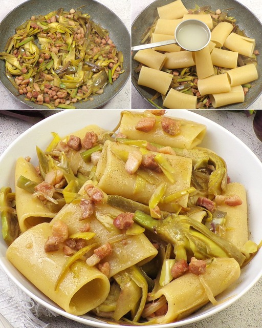 Pasta con carciofi e pancetta