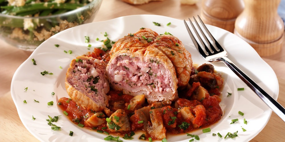Paupiettes di vitello in salsa di pomodoro con funghi italiani