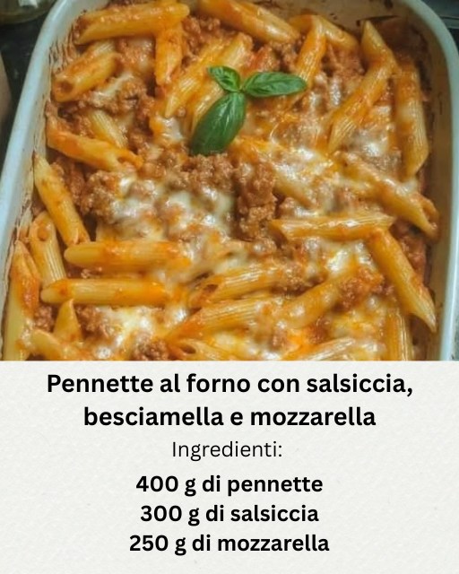 Pennette al forno con salsiccia, besciamella e mozzarella