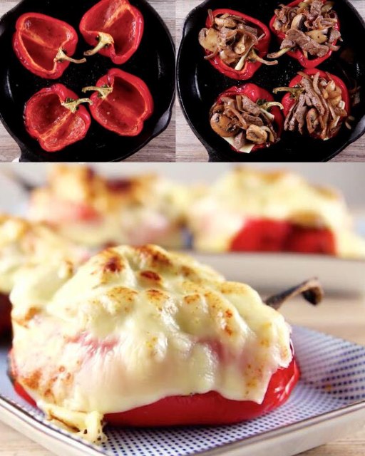 Peperoni ripieni di bistecca e funghi