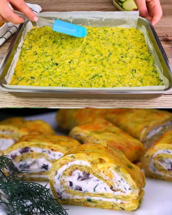 Questo rotolo di zucchine è un piatto delizioso e facile da preparare, perfetto per la primavera e l’estate. La combinazione di zucchine, uova e formaggio crea una base leggera e saporita, mentre il ripieno cremoso fatto di ricotta, formaggio cremoso, olive e aneto aggiunge un tocco irresistibile.