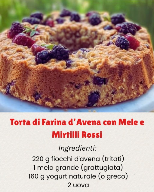 Torta di Farina d’Avena con Mele e Mirtilli Rossi