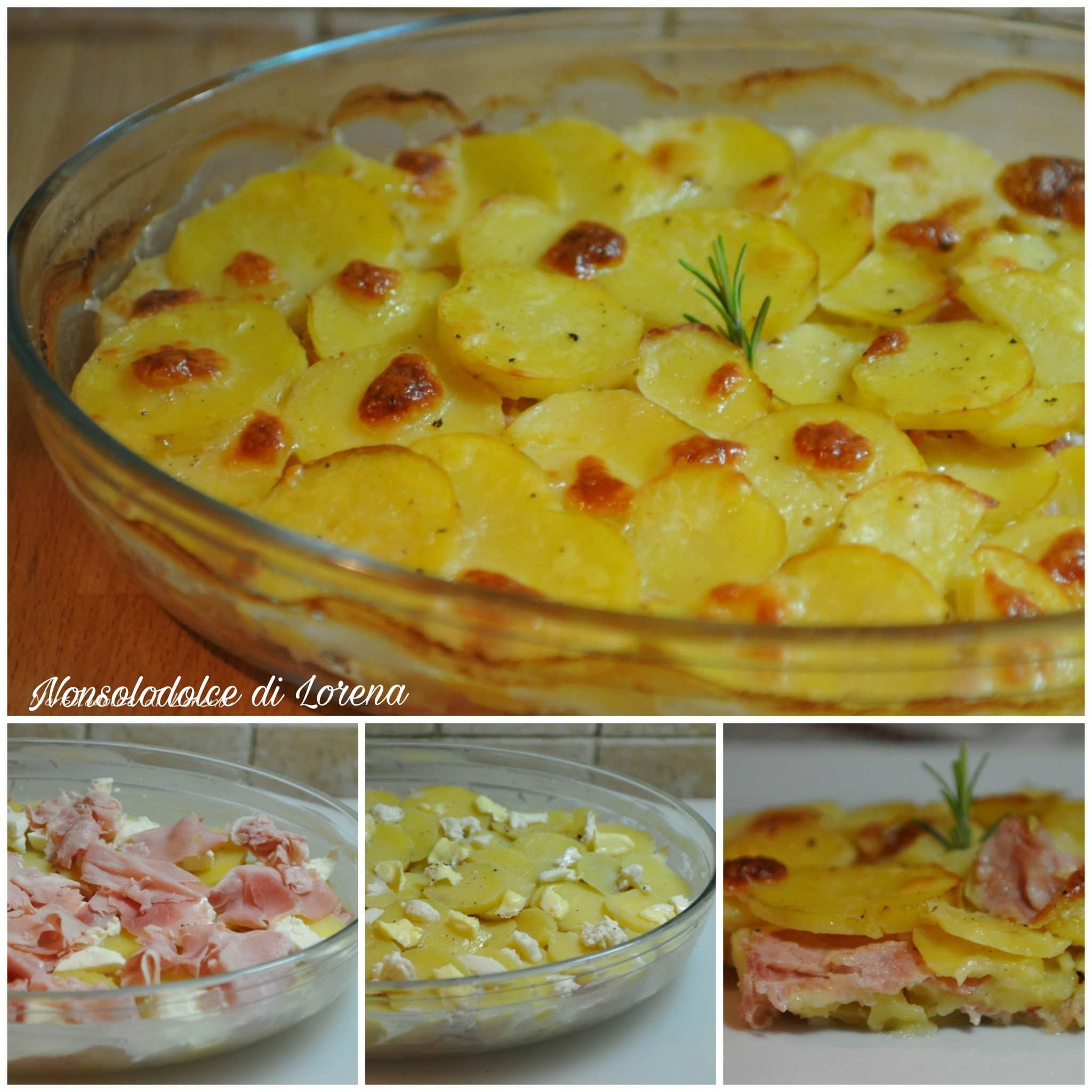 Ungete una tortiera o pirofila con un po’ di burro, tagliate le patate a fettine e iniziate con un primo strato di patate, salate e pepate leggermente. Tagliate la mozzarella a pezzetti e distribuitela un po’ qua e la sopra le patate, infine coprite con qualche fettina di prosciutto cotto.