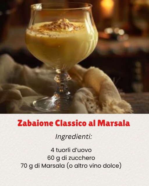 Zabaione: La Ricetta PerfettaZabaione: La Ricetta Perfetta Ingredienti:4 tuorli d’uovo60 g di zucchero70 g di Marsala (o Moscato, Passito, Vin Santo) Prossimo→